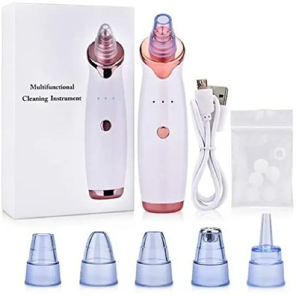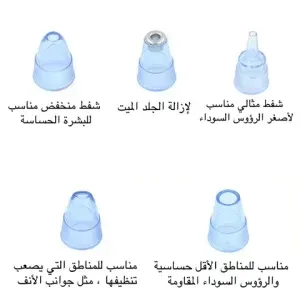 جهاز تنظيف المسام وشفط الدهون والرؤوس السوداء وتنظيف حب الشباب مميزات المنتج: تنظيف الوجه من الرؤوس السوداء او البثور او مسام الوجه مناسب لكل انواع البشرة يستخدم كتدليك للوجه قوي الشفط حيث يمتص لأبعاد عميقة ثلاث مستويات من قوة الشفط يمكن شحنه عن طريق USB مرفق مع الجهاز لا يحتاج لاسلاك كهرباء عند الاستخدام يأتي مع المنتج 5 روؤس لمختلف الاستخدامات