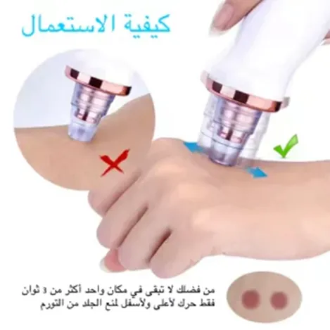 تأكد من تنظيف بشرتك قبل القيام بهذه العملية وعند الإنتهاء يجب التأكد من تطهيره كذلك .. مع وضع القليل من المرطب بعد التنظيف .. أيضاً تأكد من تنظيف رأس الجهاز بلكحول و تعقيمه .. يرجى ملاحظة أن إحمرار الجلد أمر طبيعي ويستمر لمدة بسيطة فقط .. تأكد من عدم الشفط في بقعة واحدة لفترة طويلة جداً .