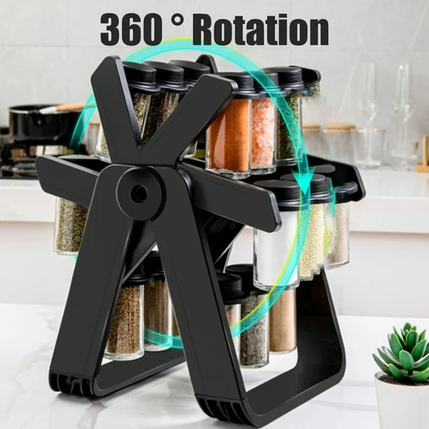 منظم التوابل الدوار العجيب كل توابل مطبخك في مكان واحد! دوار بزاوية 360° هو الحل الأمثل لتنظيم مطبخك، ويوفر لكي سهولة الوصول إلى كل التوابل بلمسة يد